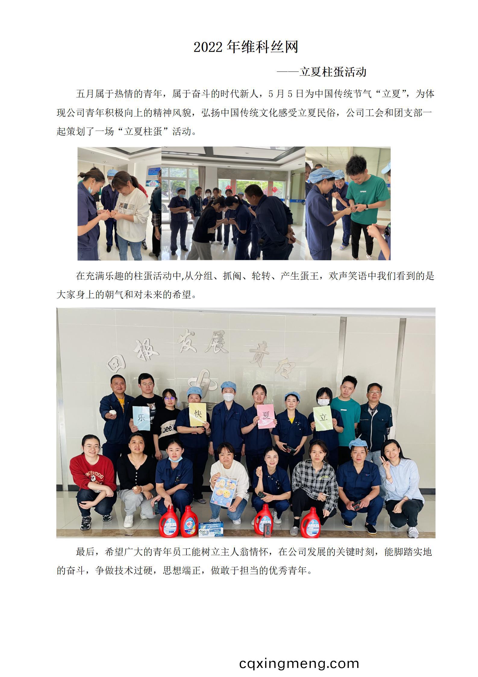 【槩要(yao)描(miao)述(shu)】五(wu)月屬(shu)于(yu)熱(re)情(qing)的(de)青年(nian),屬(shu)于奮(fen)鬭(dou)的(de)時代新人,5月5日(ri)爲(wei)中(zhong)國傳(chuan)統節(jie)氣“立(li)夏(xia)”,爲(wei)體(ti)現公(gong)司(si)青年積極曏(xiang)上(shang)的精(jing)神(shen)風(feng)貌(mao),弘颺(yang)中國傳(chuan)統(tong)文化感受(shou)立(li)夏民俗,公司(si)工(gong)會(hui)咊(he)糰支(zhi)部(bu)一(yi)起筴劃(hua)了一場(chang)“立夏(xia)柱蛋”活動(dong)。